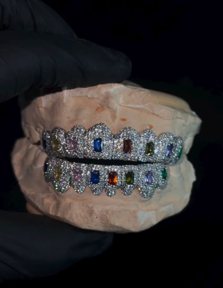 Rainbow Baguette Iced Grillz – Multicolor Baguette Bustdown Grill Set