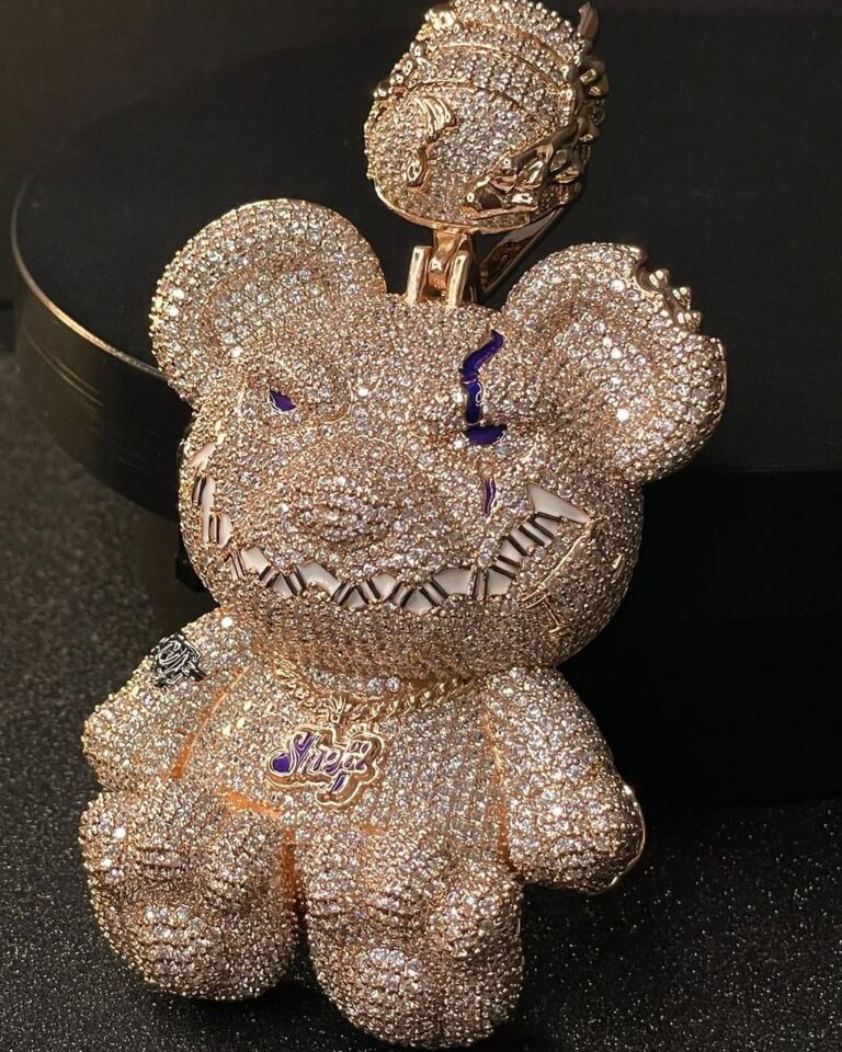 Fully Iced Teddy Bear Pendant – Rose Gold Bust Down Moissanite Piece