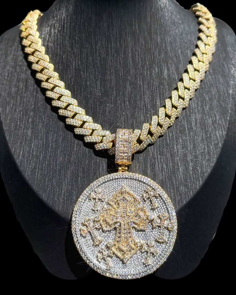 Fully Iced Round Medallion Pendant – Moissanite Bust Down Coin Chain