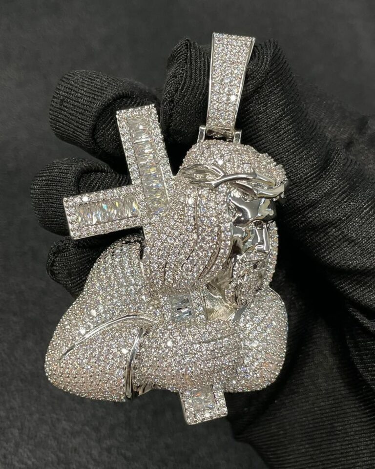 Fully Iced Praying Hands Pendant – Rose Gold Bust Down Moissanite Piece