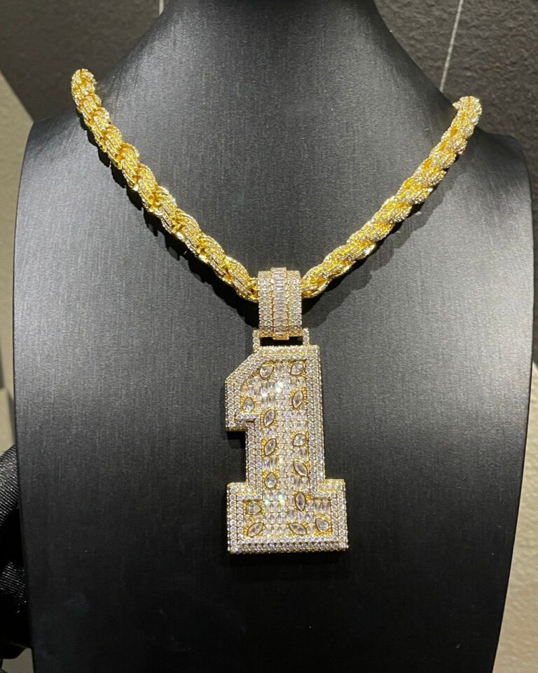 Custom fully iced number pendant – bust down moissanite “1” piece with Cuban chain