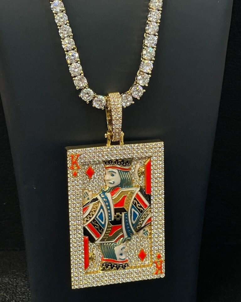King card fully iced pendant – bust down moissanite playing card piece