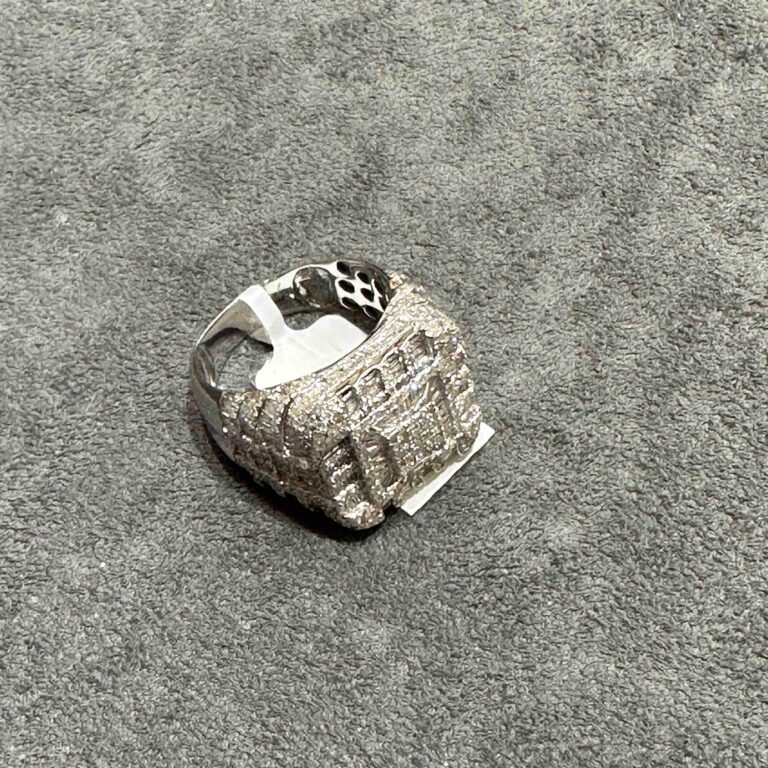 14K WHITE GOLD “BAGUETTE” SQUARE ICED BUST DOWN RING