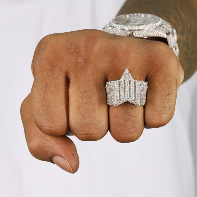 Fully Iced Star VVS Moissanite Diamond Ring