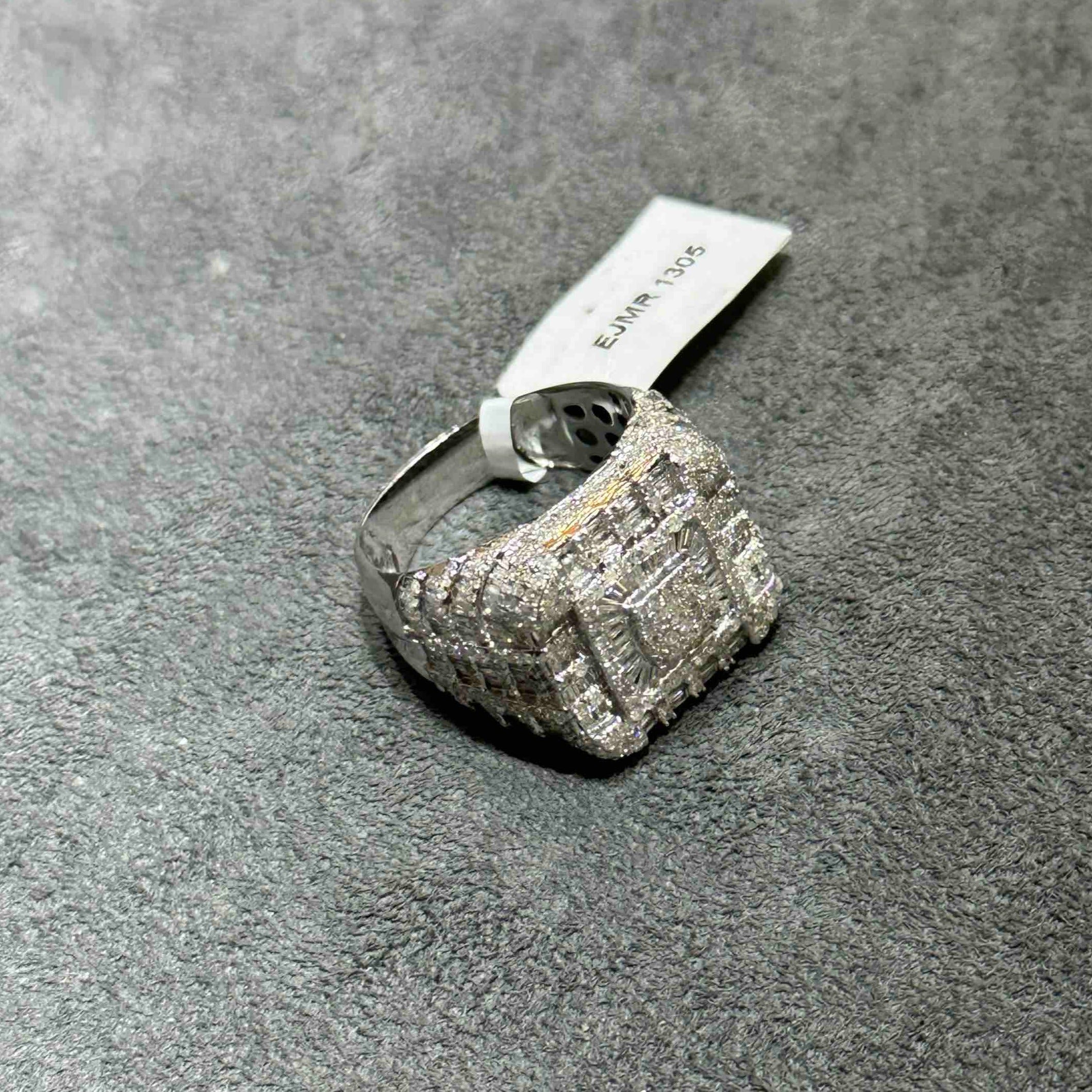 14K WHITE GOLD “BAGUETTE” SQUARE ICED BUST DOWN RING