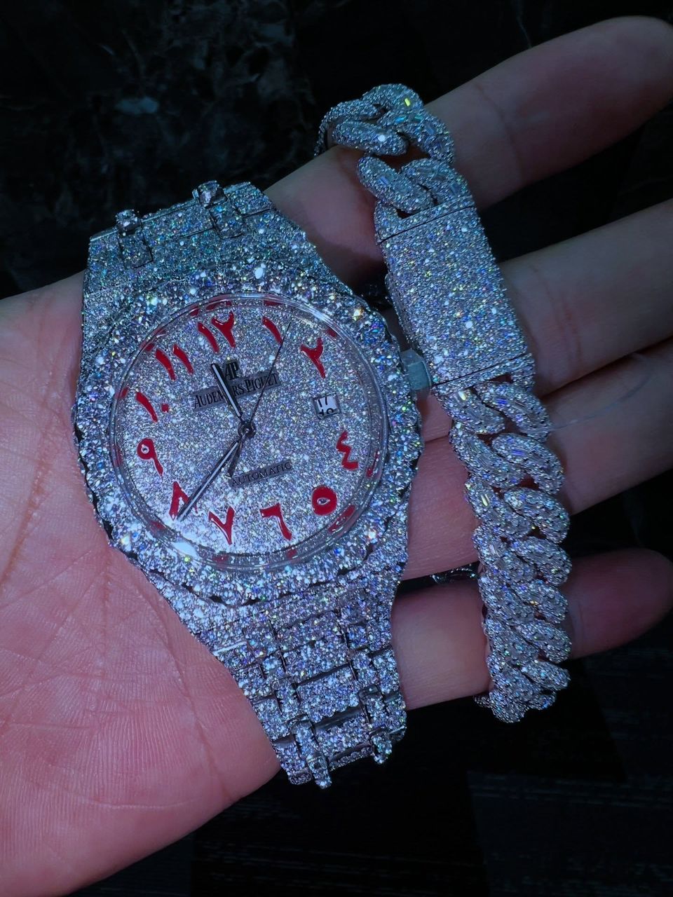 AP + Cuban Bracelet white iced out Vvs Moissanite
