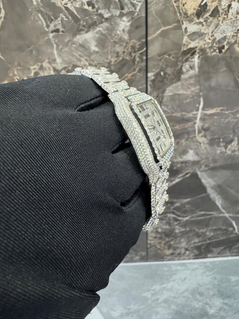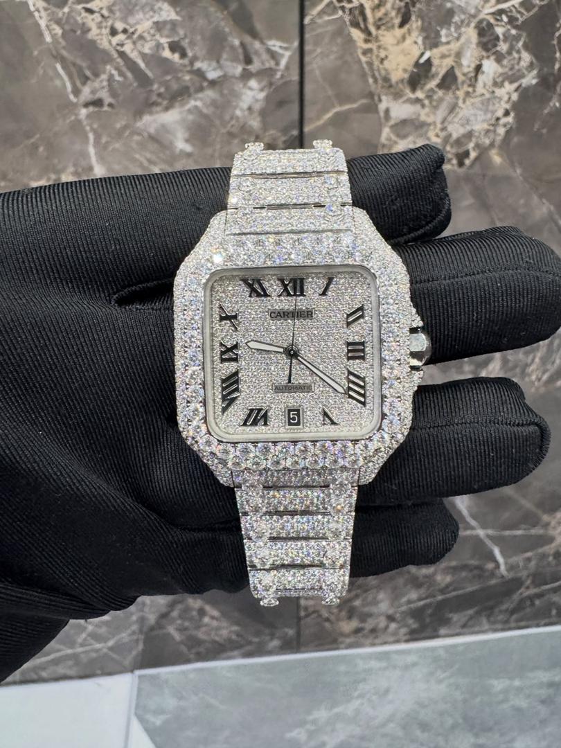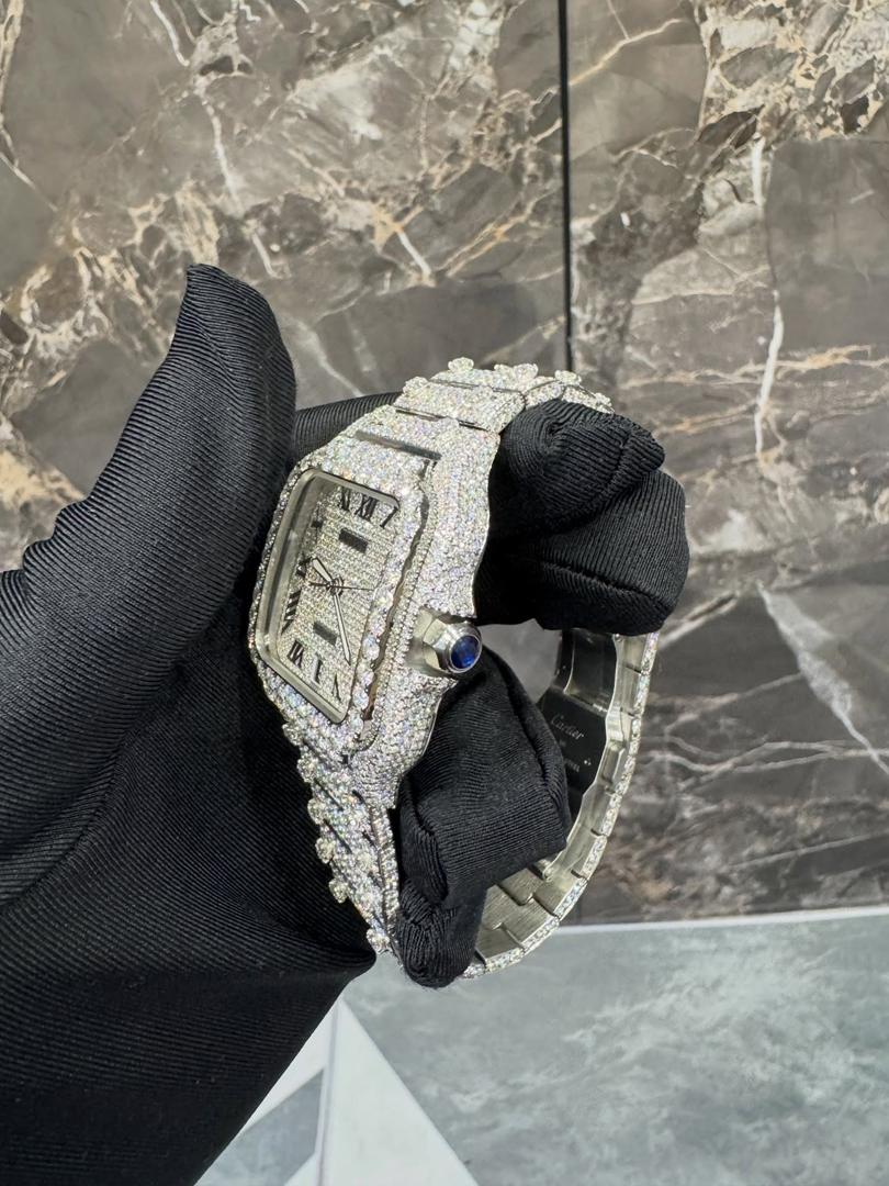 Whether worn as a standout accessory or added to an exclusive collection, the Cartier Santos Full Iced-Out Diamond Watch represents confidence, prestige, and elevated craftsmanship.