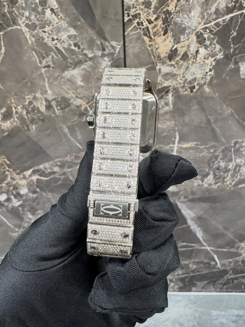 - Cartier Santos iced-out diamond luxury watch