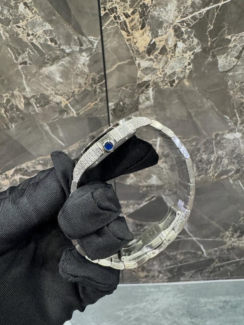 Whether worn as a statement piece or gifted as a symbol of style and success, the Cartier Santos Iced-Out Ice Blue Dial Watch represents confidence, sophistication, and elevated craftsmanship.