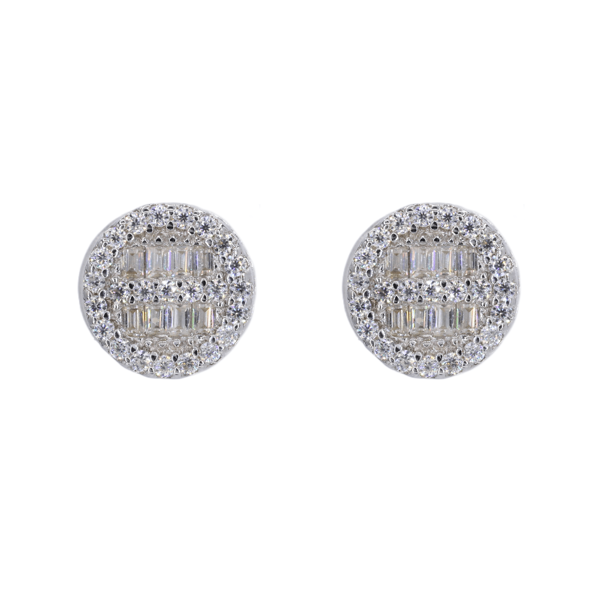 Circle Baguette Infill Fully Iced VVS Moissanite Daimond Earrings
