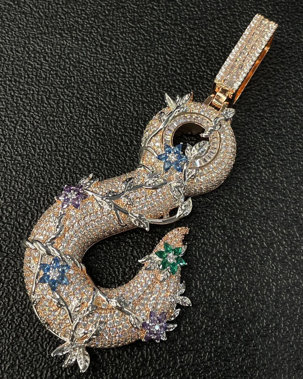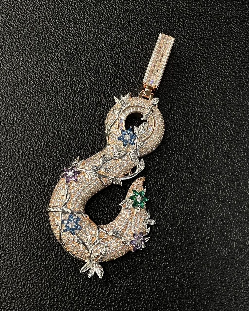 This piece is straight luxury with a creative edge. A fully iced thorn-style letter pendant designed to stand out with both shine and detail. Built in a bold curved letter form and wrapped in thorn-inspired accents, this pendant delivers a unique look that combines clean elegance with raw character.
