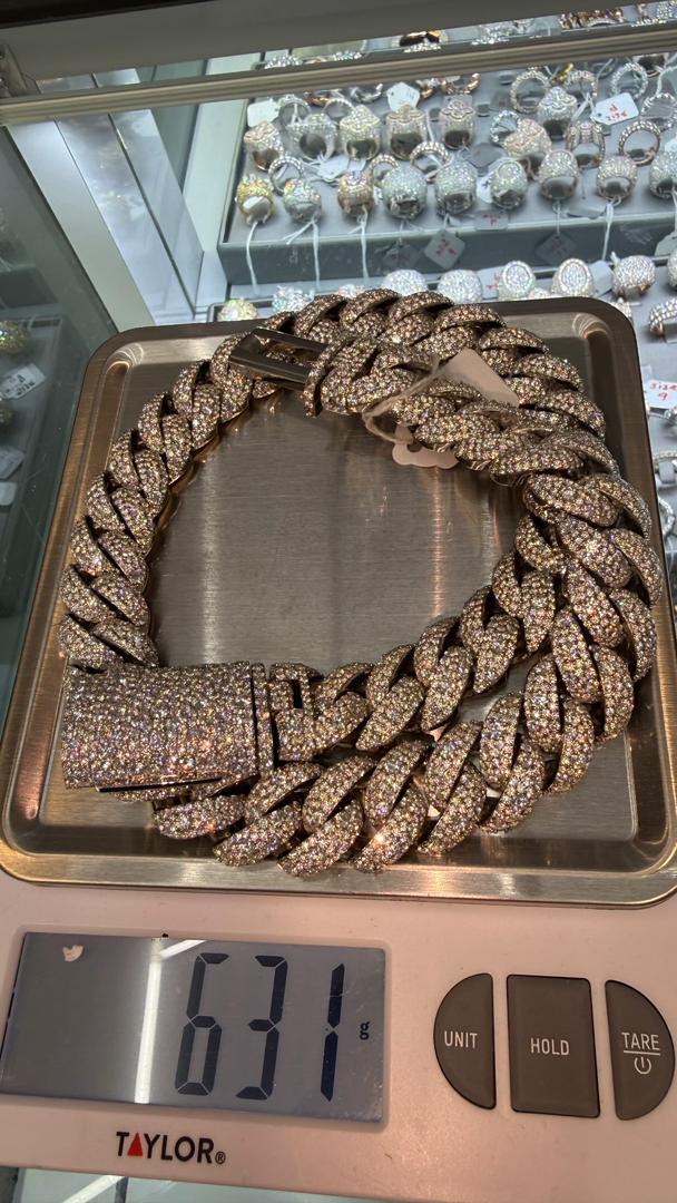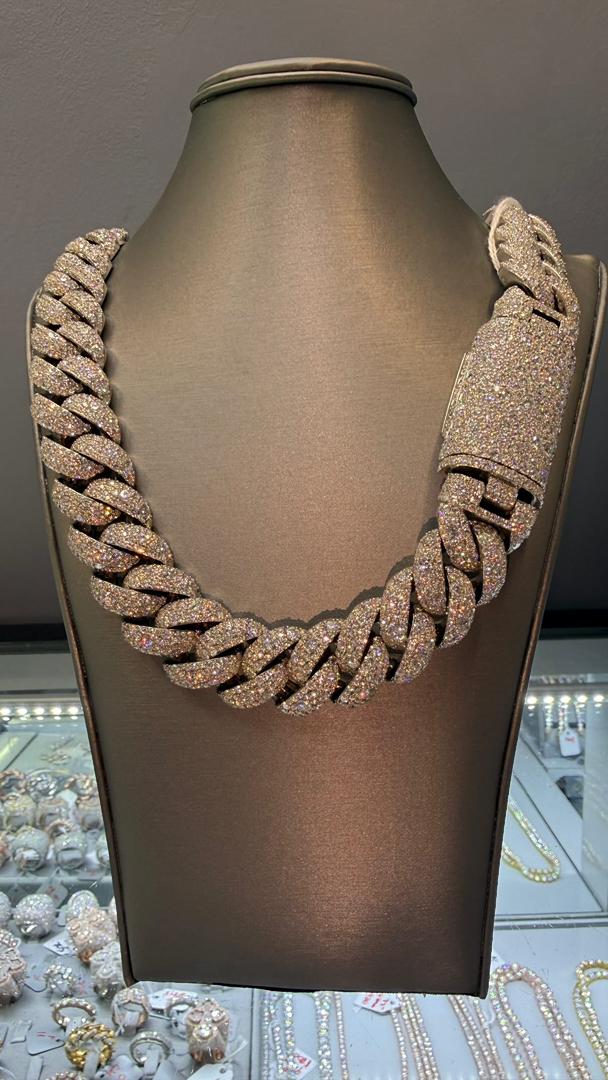 This dazzling Cuban link chain is the ultimate symbol of luxury. Fully iced out with diamonds on every link, it boasts an eye-catching sparkle that will make you the center of attention. Crafted with precision, the heavy-duty design ensures durability, while the gleaming diamonds set in a meticulous pattern bring a shine that’s impossible to ignore. The clasp is equally stunning, featuring more diamonds to complete the look. This chain is a must-have for anyone who appreciates high-end, show-stopping jewelry. Its flawless craftsmanship makes it a timeless piece that will elevate your style instantly.