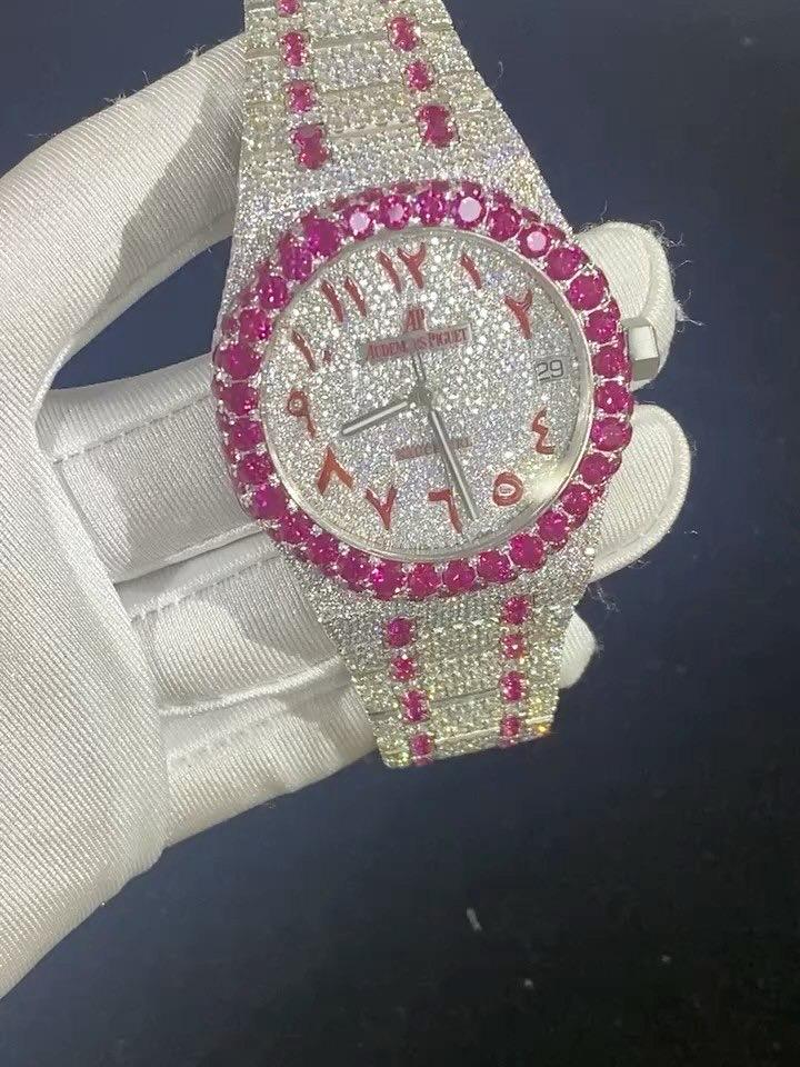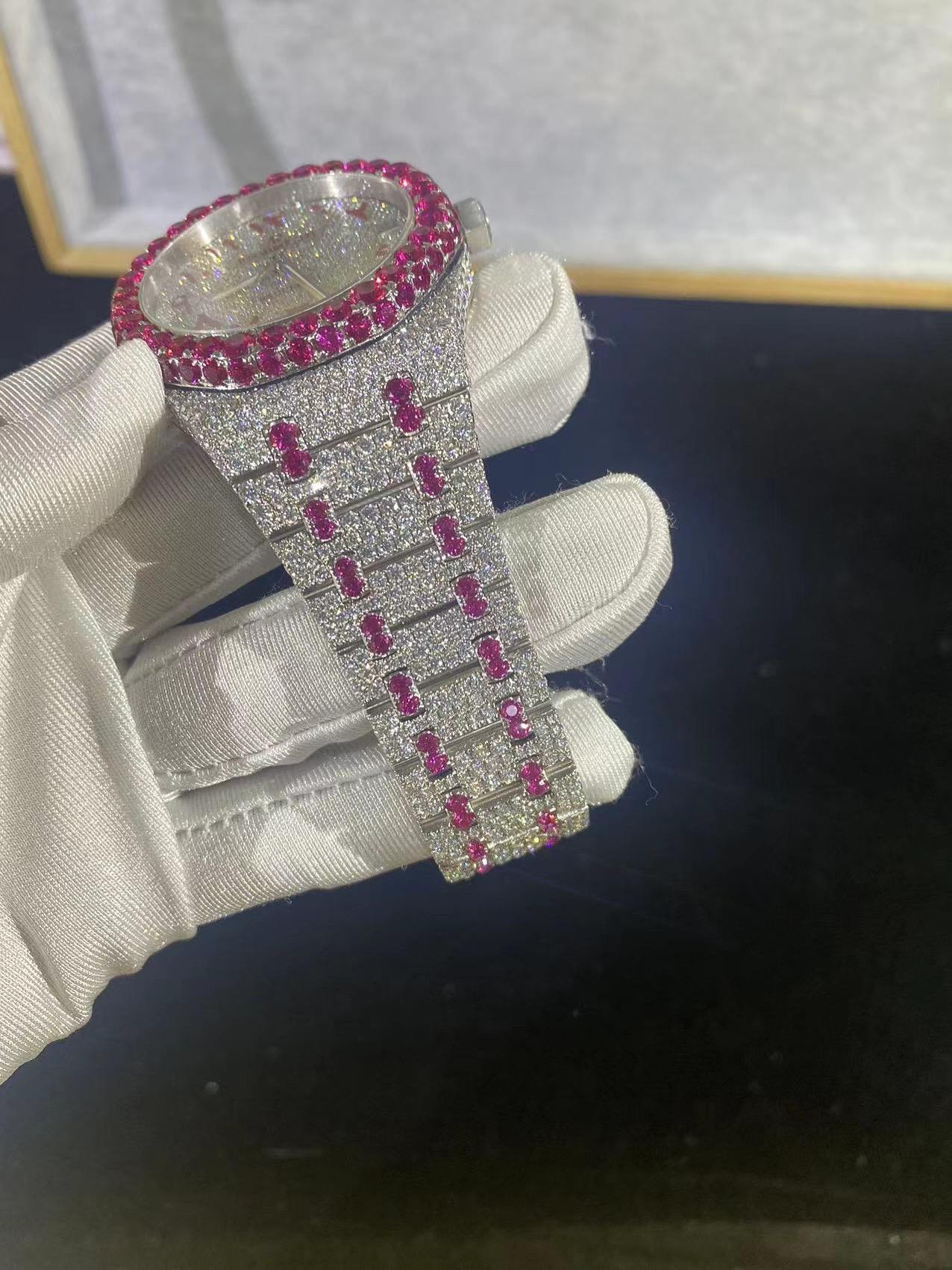 Iced-Out Watch with Ruby Accents – Luxury Statement Timepiece
