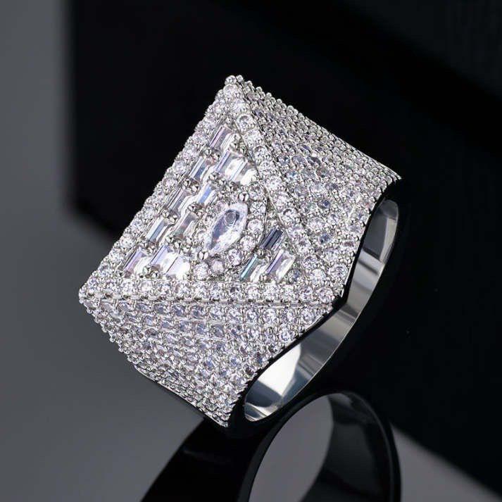Make a powerful statement with this bold and luxurious Iced Pyramid Statement Ring, crafted for those who appreciate standout jewelry with a modern edge. Featuring a unique geometric pyramid-inspired design, this ring combines structured elegance with intense brilliance.