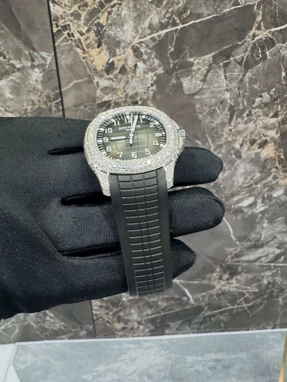 - Patek Philippe style full white ice diamond watch