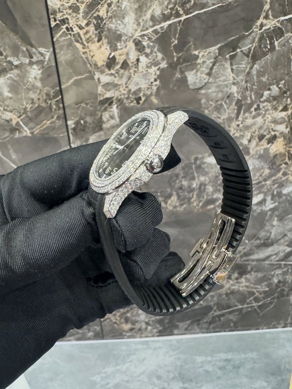 If you’re into Patek Philippe style watches, full white ice pieces, iced-out bezel watches, or luxury rubber strap watches, this one hits different — simple, clean, and powerful.