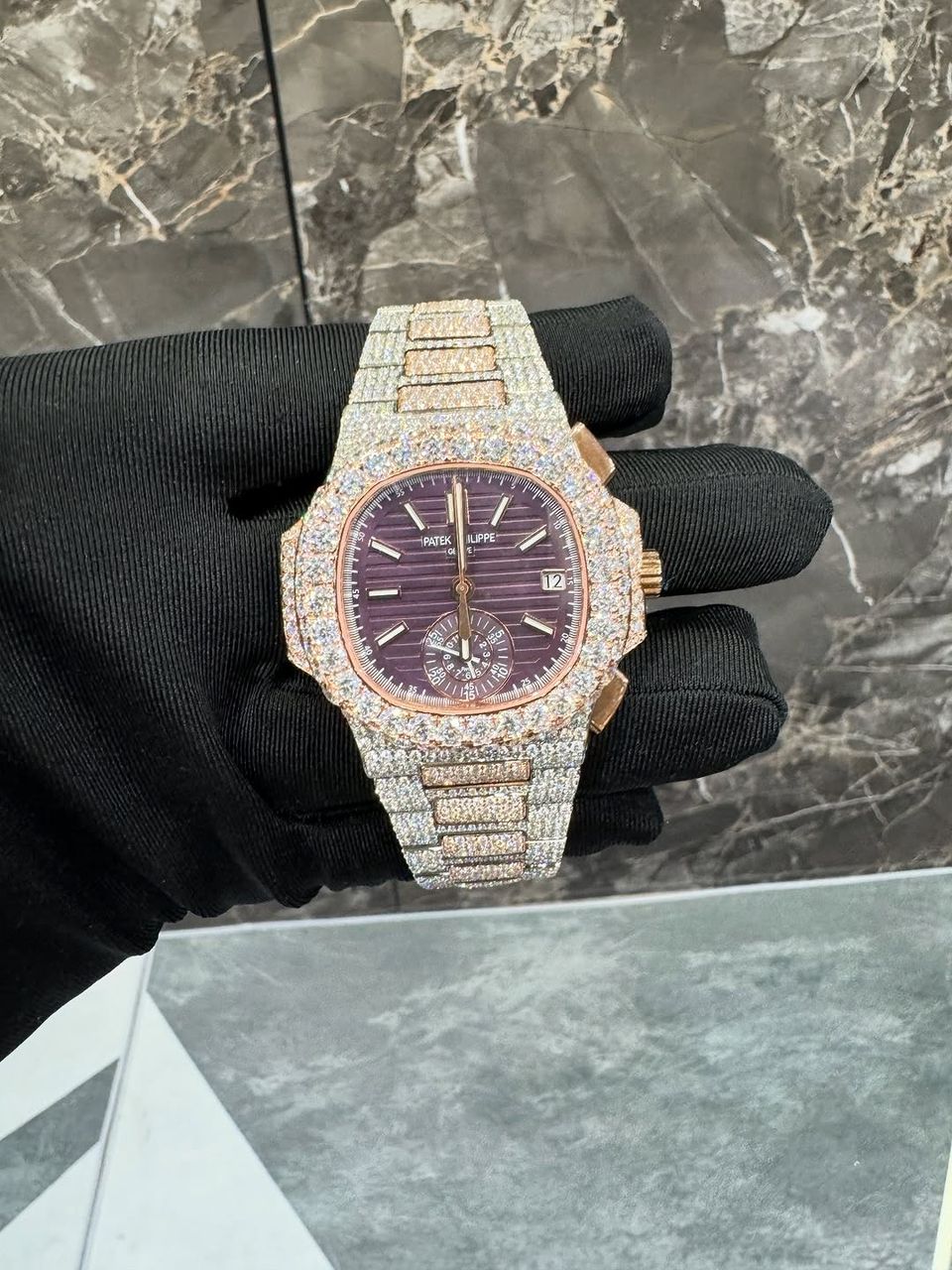 This is for anyone stepping into that high-end lane — if you’re into Patek Philippe watches, rose gold and gold iced watches, full white ice chronograph pieces, or standout luxury timepieces, this one is built to turn heads.