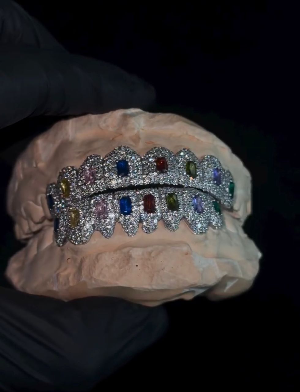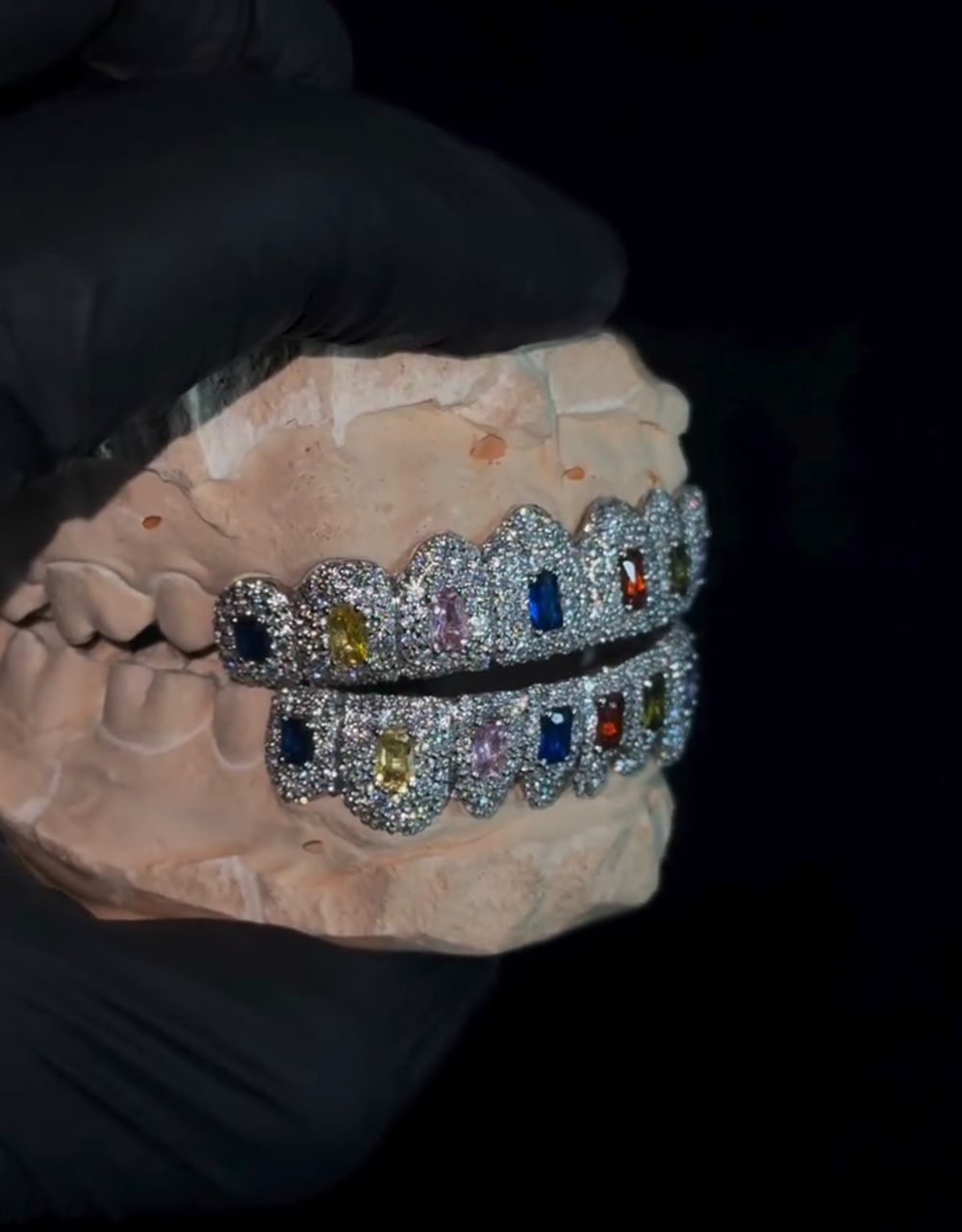 Turn heads with these Rainbow Baguette Iced Grillz, featuring a luxurious multicolor baguette bustdown grill set that blends VVS Moissanite stones across both top and bottom sets. Crafted to perfection, the colorful stones glisten in every light, creating a dazzling effect that elevates your look. The intricate design combines premium quality VVS Moissanite diamonds with vibrant rainbow-colored baguette stones, ensuring your grillz make a statement of pure opulence. Whether you’re looking to flex on the streets or enhance your shine for a night out, these grillz are all you need to turn up your style.
