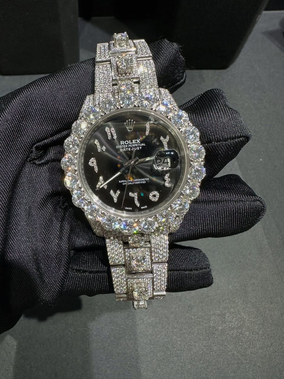 - Rolex Datejust full white ice diamond watch