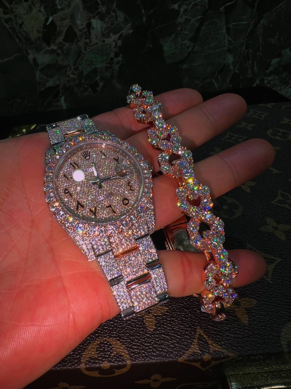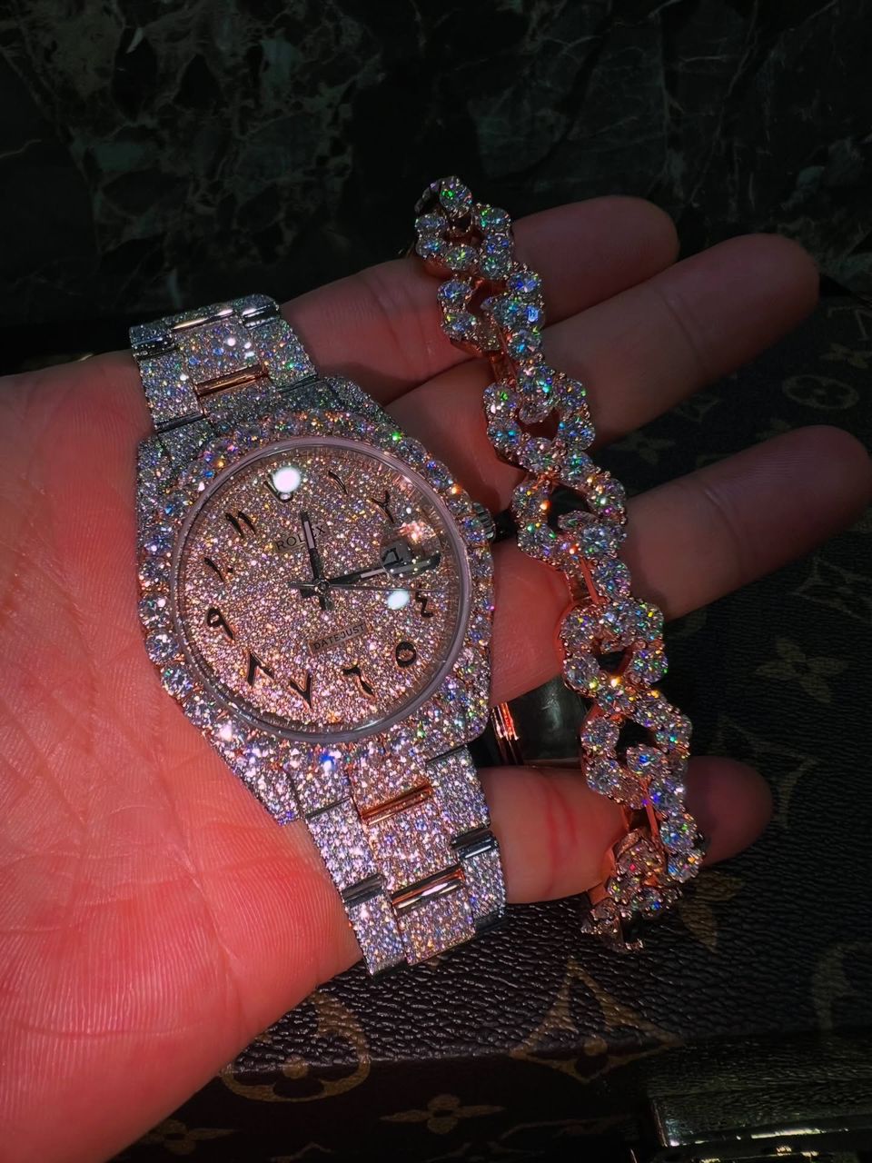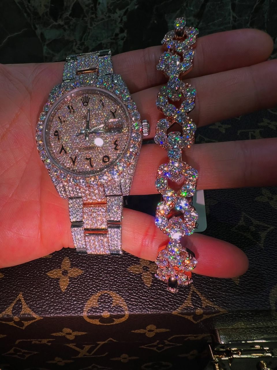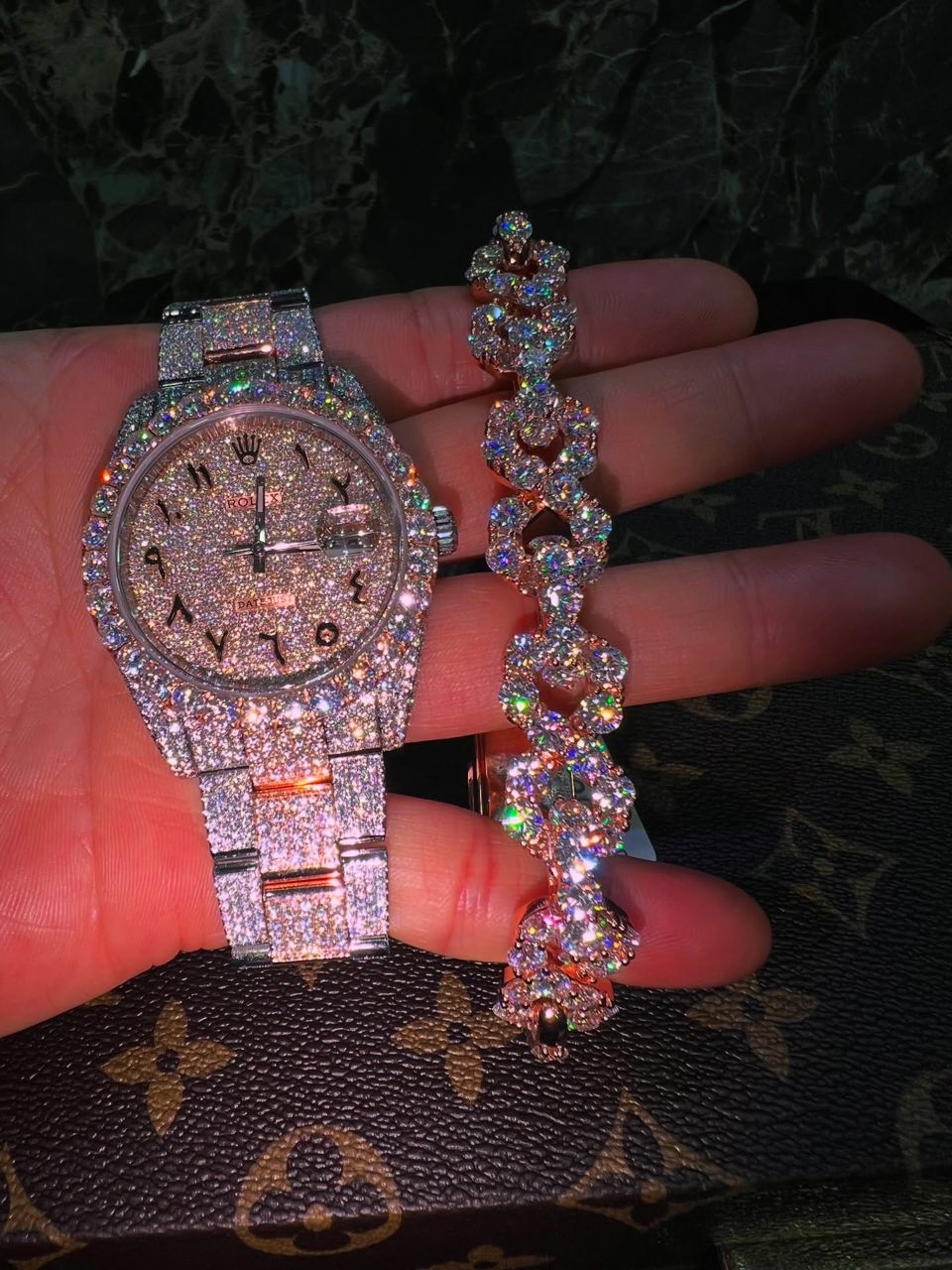 - Diamond-encrusted Rolex watch with full sparkle case and bracelet